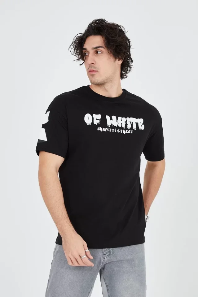 Erkek 24/1 Penye Baskılı T-Shirt - Siyah
