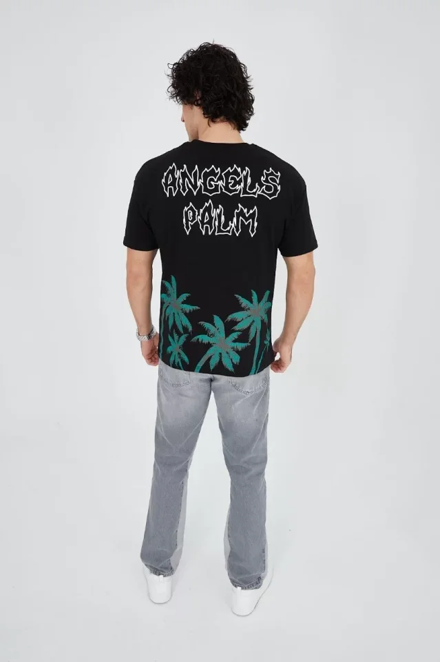 Erkek Baskılı Bisiklet Yaka T-Shirt - Siyah