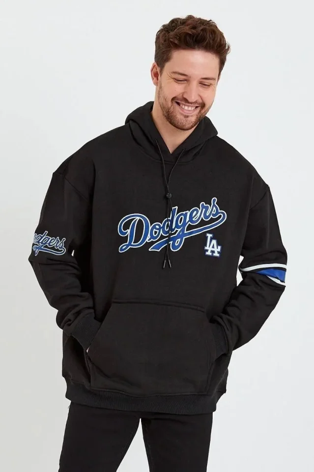 Erkek Baskılı Kapşonlu Üç Iplik Oversize Sweatshirt - Siyah