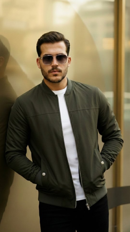 Erkek İçi Astarlı Su Geçirmez Bomber Mevsimlik Ceket - Siyah