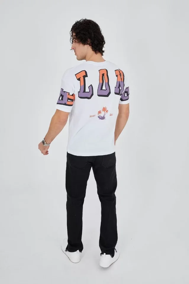 Erkek Ön Ve Arka Baskılı T-Shirt - Beyaz