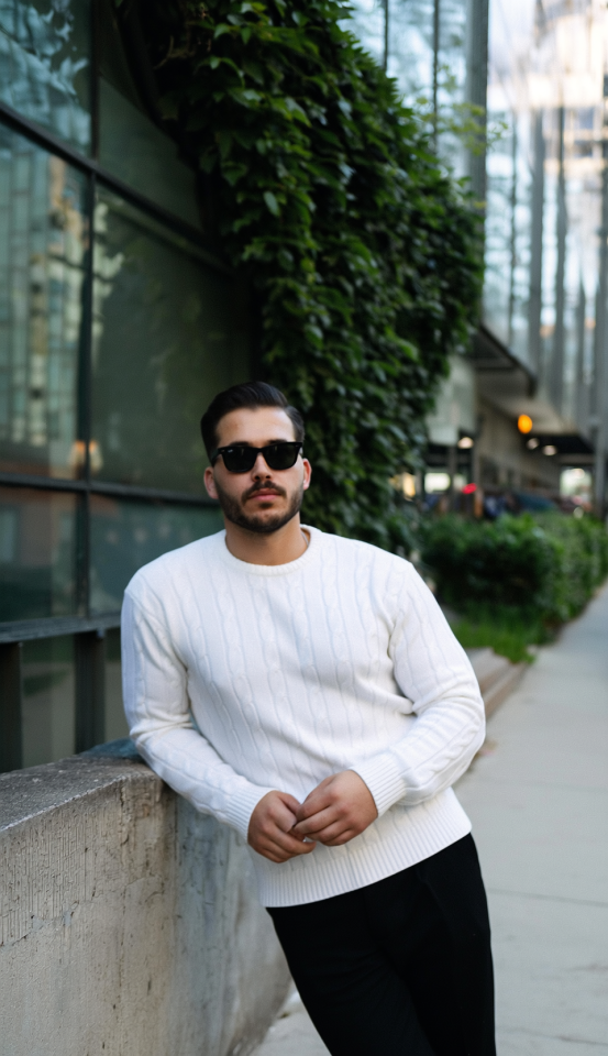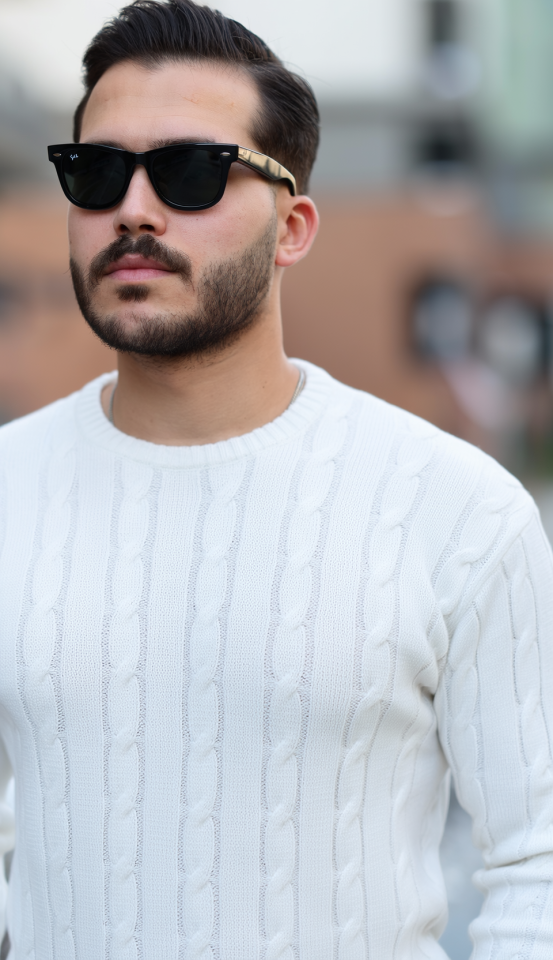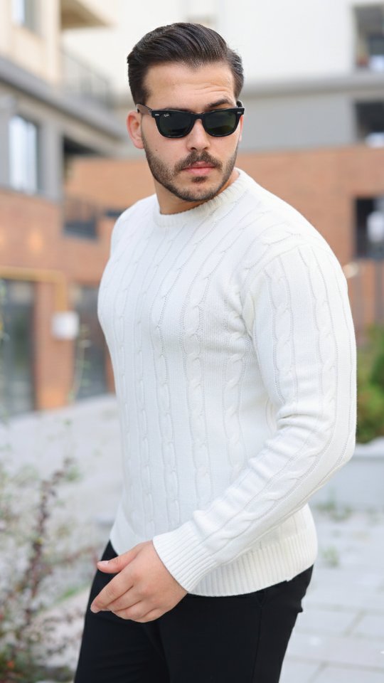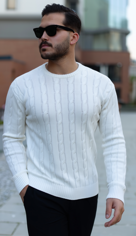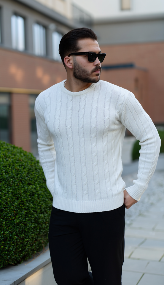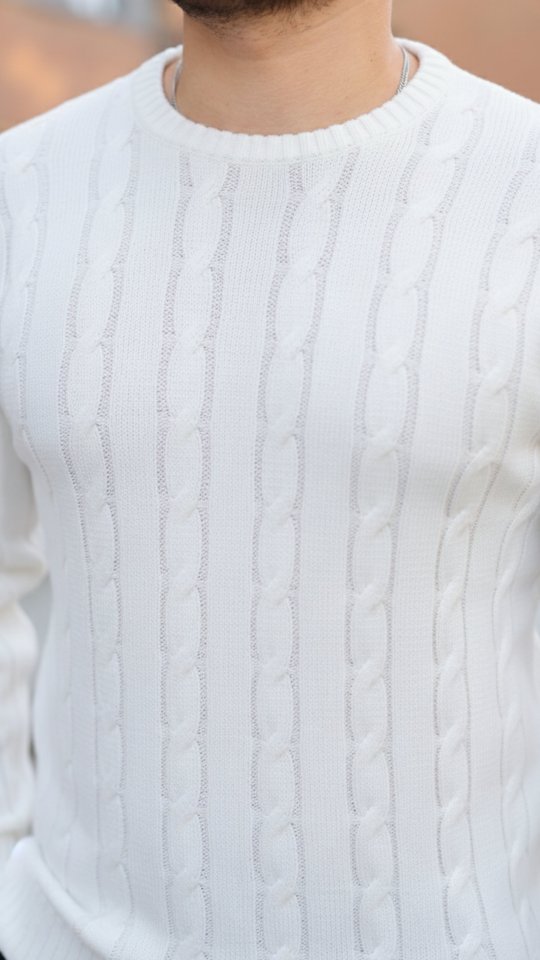 Erkek Örgü Desen Bisiklet Yaka Kazak
