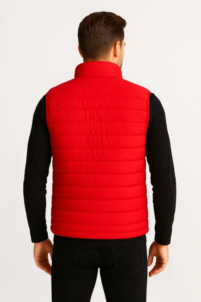 Erkek Şişme Fermuarlı Yelek Su Itici Kapitone Astarlı Kumaş Cepli Hafif Kışlık Spor Rahat Kalıp - Kırmızı