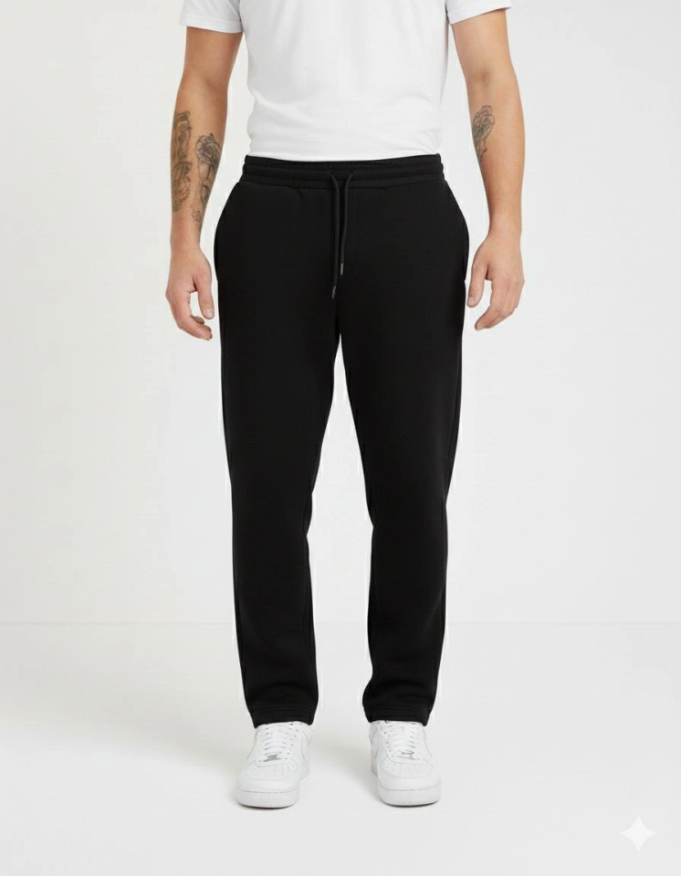 Erkek Üç Iplik Kışlık Pamuklu Ovarsize Bağcıklı Düz Paça Cepli Eşofman Altı Spor Rahat Model - Siyah
