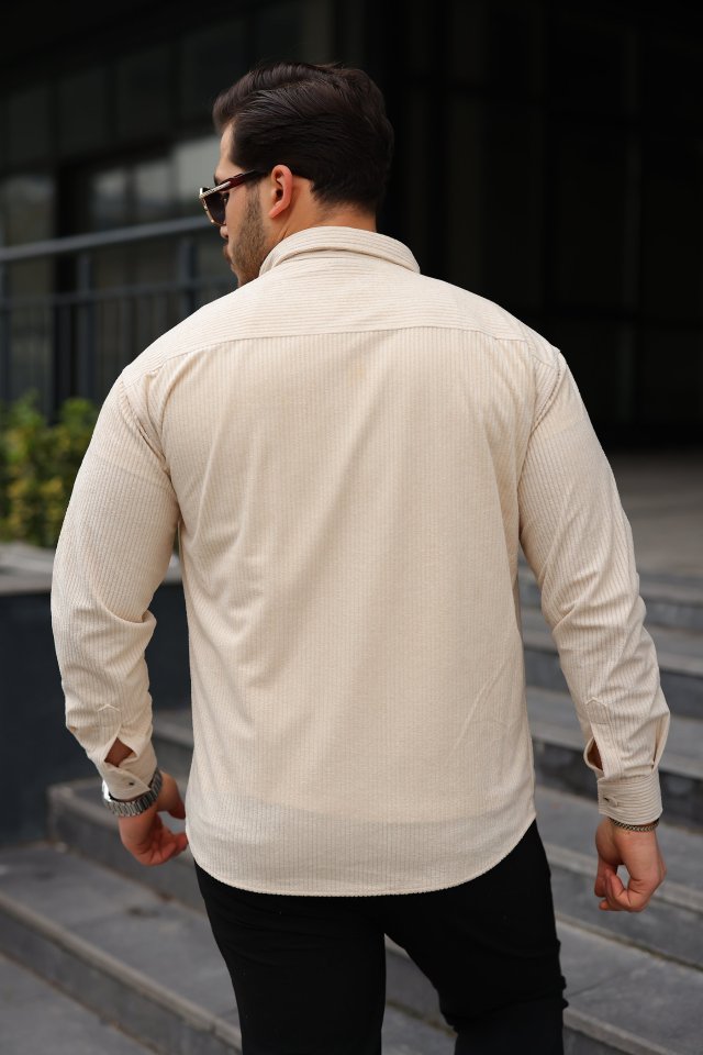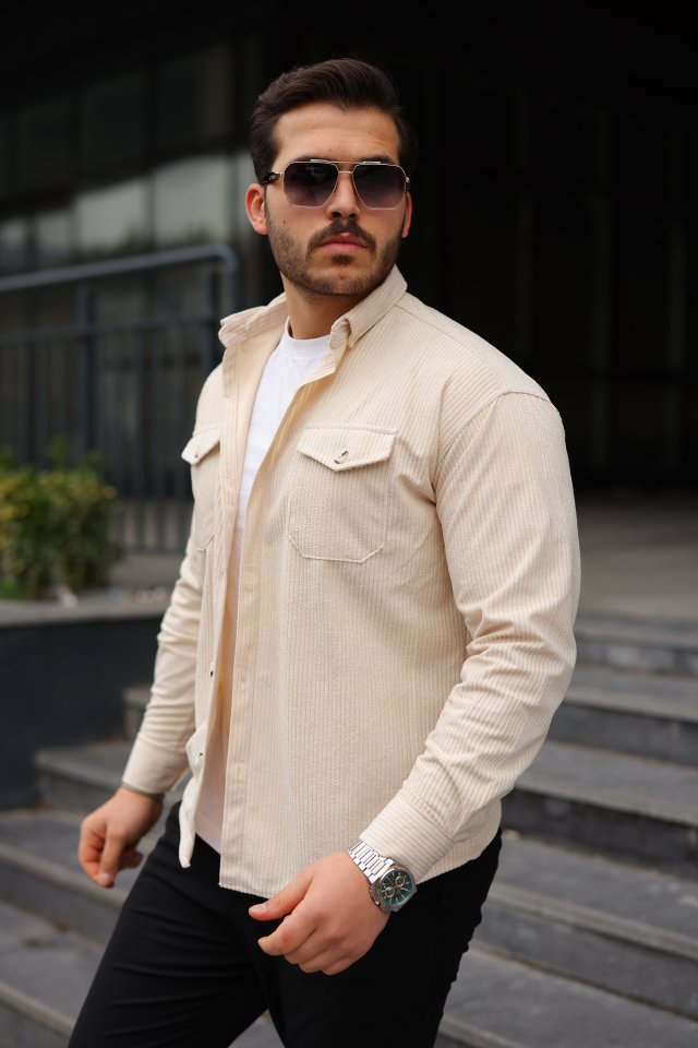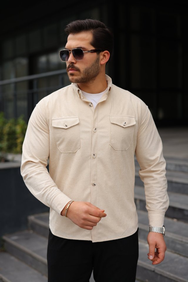 Erkek Uzun Kollu Cepli Kadife Gömlek