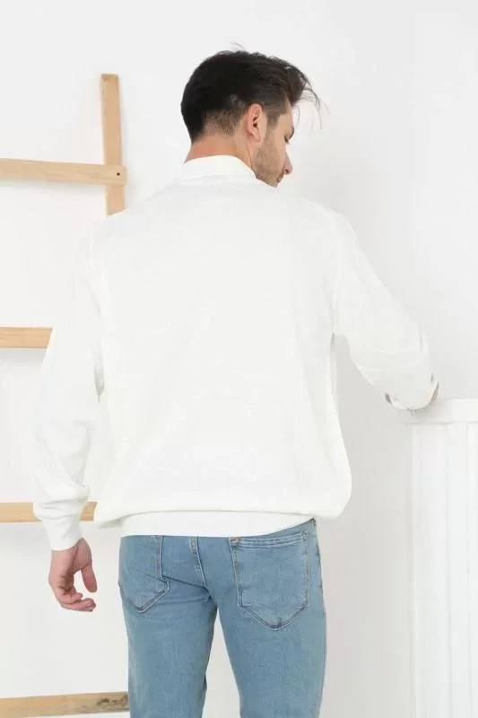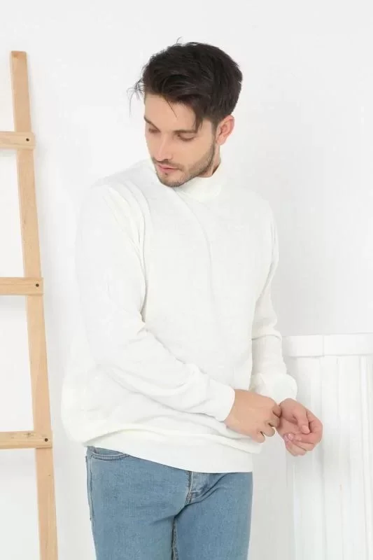 Erkek Yarım Balıkçı Yaka Triko Kazak - Beyaz