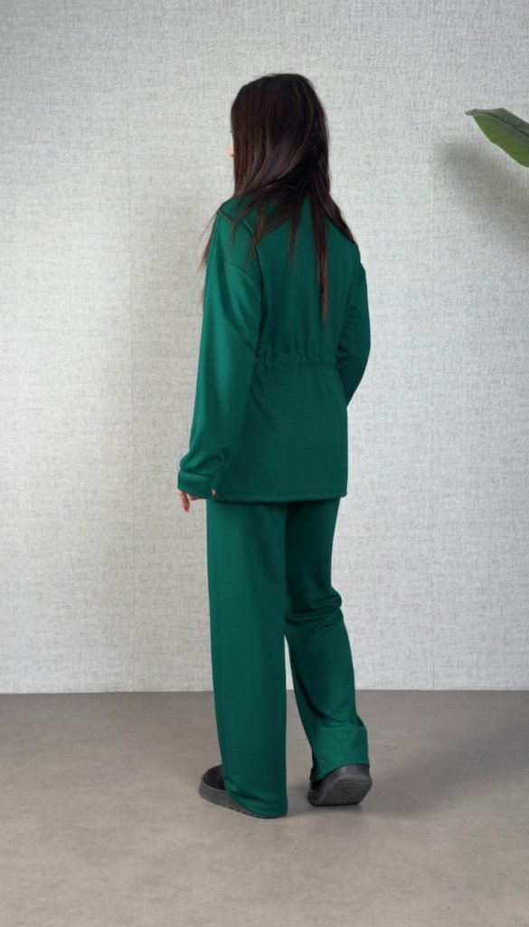 Kadın Uzun Kollu Bisiklet Yaka Belden Büzgülü Bağcıklı Viskon Iki Iplik Bluz Ve Pantolon Ikili Takım