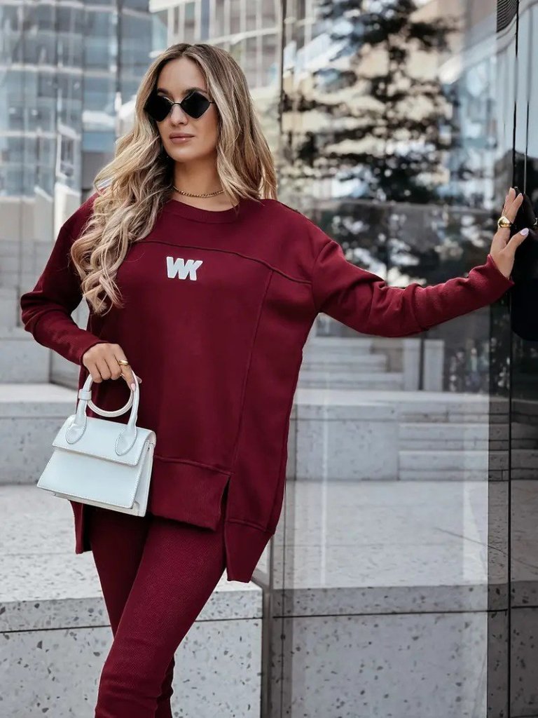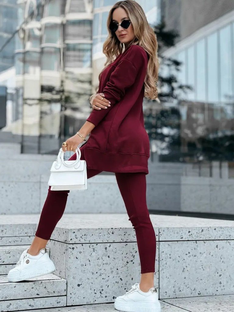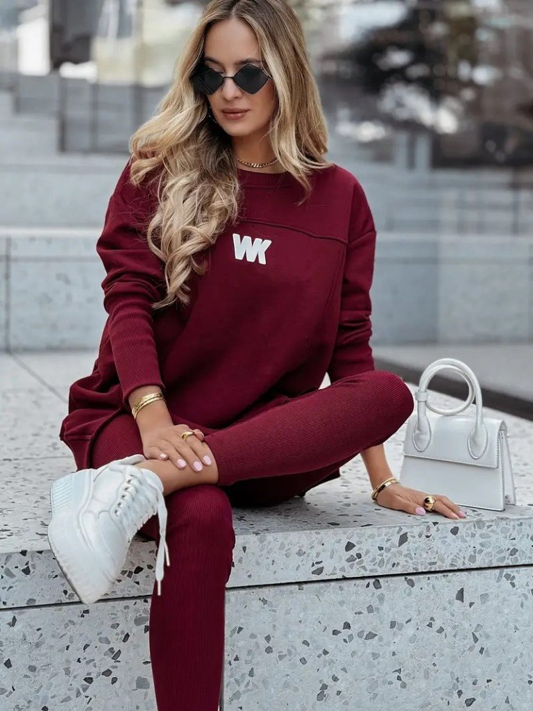 Kadın Uzun Kollu Bisiklet Yaka Nervurlu Viskon Iki Iplik Ve Tayt Pantolon Ikili Takım