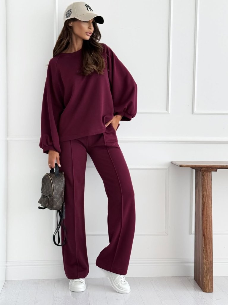 Kadın Uzun Kollu Geniş Kesim Modal Bluz Ve Pantolon Ikili Takım