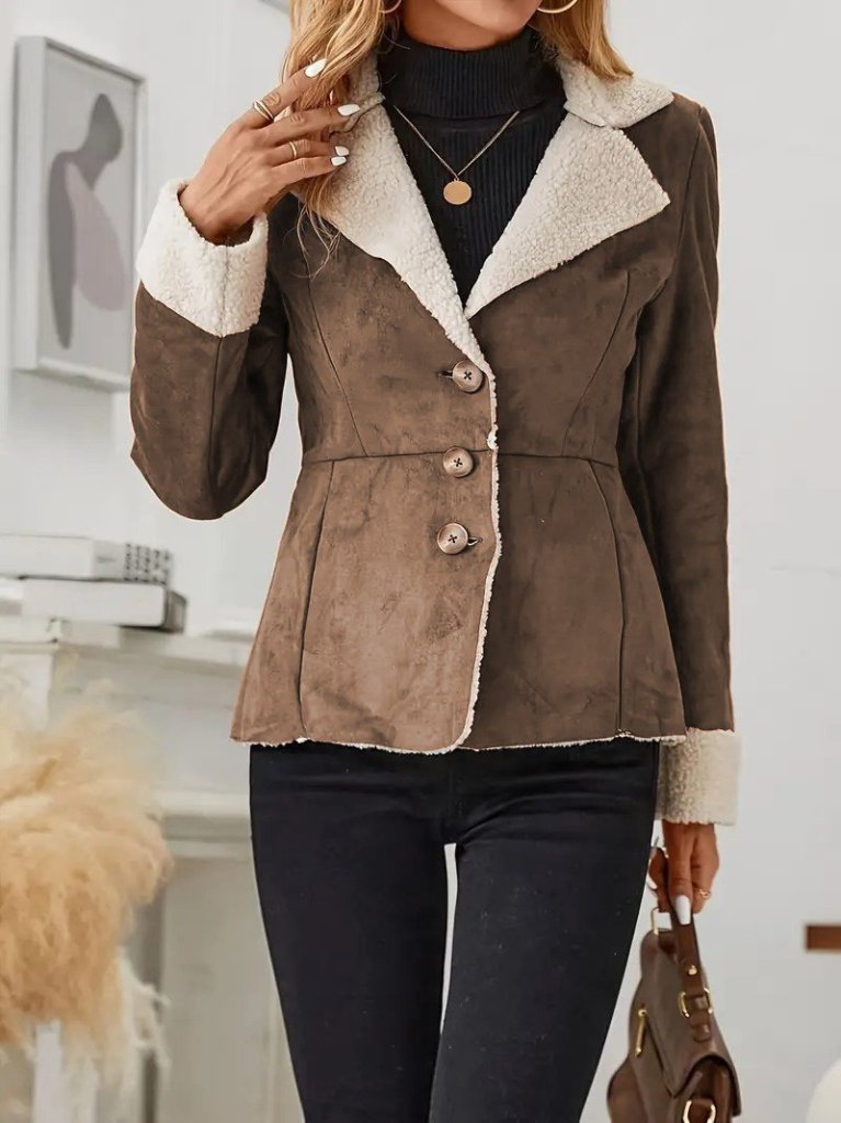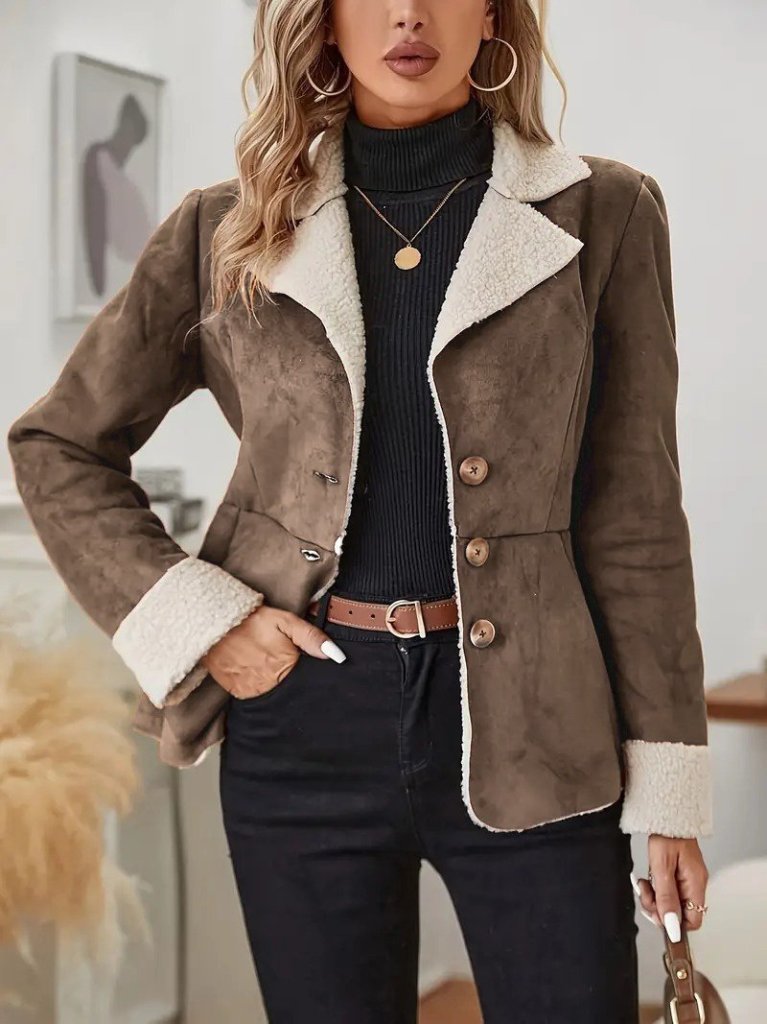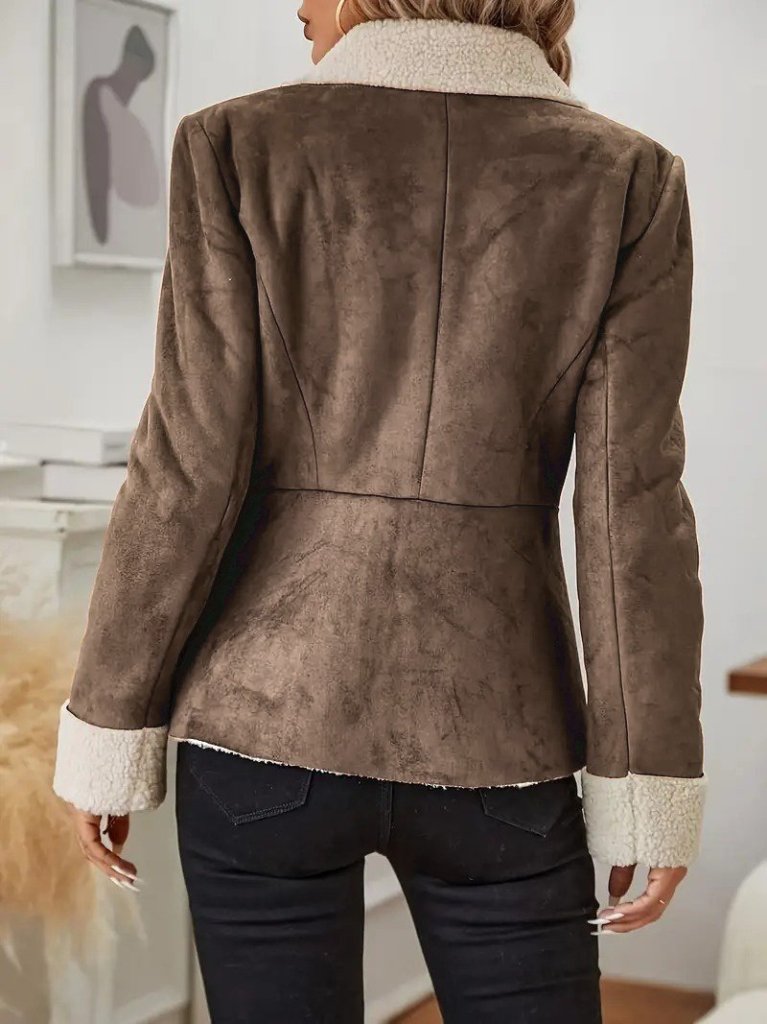 Kadın Uzun Kollu önden Düğmeli Cep Detaylı Kısa Süet Ceket