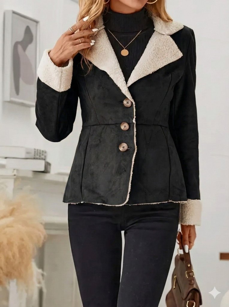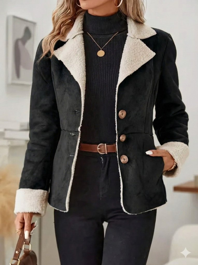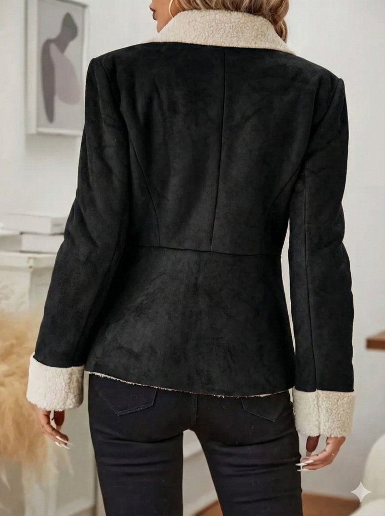 Kadın Uzun Kollu önden Düğmeli Cep Detaylı Kısa Süet Ceket