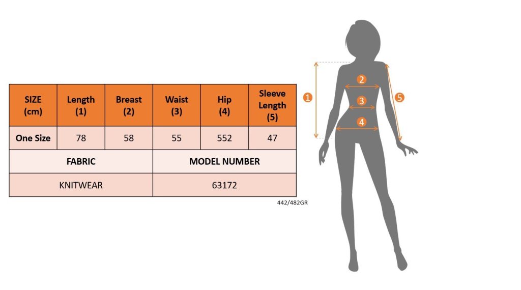 Modelin Ölçüleri: Boy:165, Kg:55, Göğüs:90, Bel:72, Kalça: 100