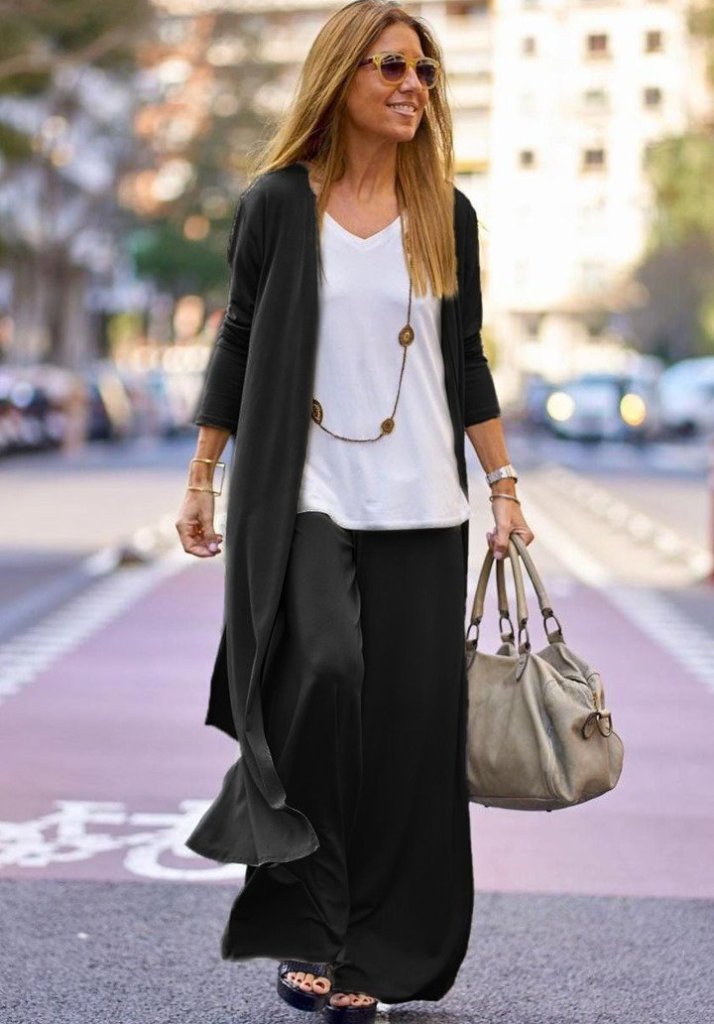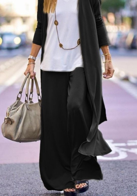 Kadın Uzun Kollu önü Açık Viskon Ceket Ve Pantolon Ikili Takım