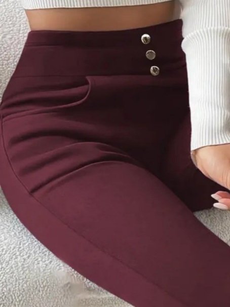 Kadın Yüksek Bel Cepli Düğmeli şardonlu Dalgıç Tayt Pantolon