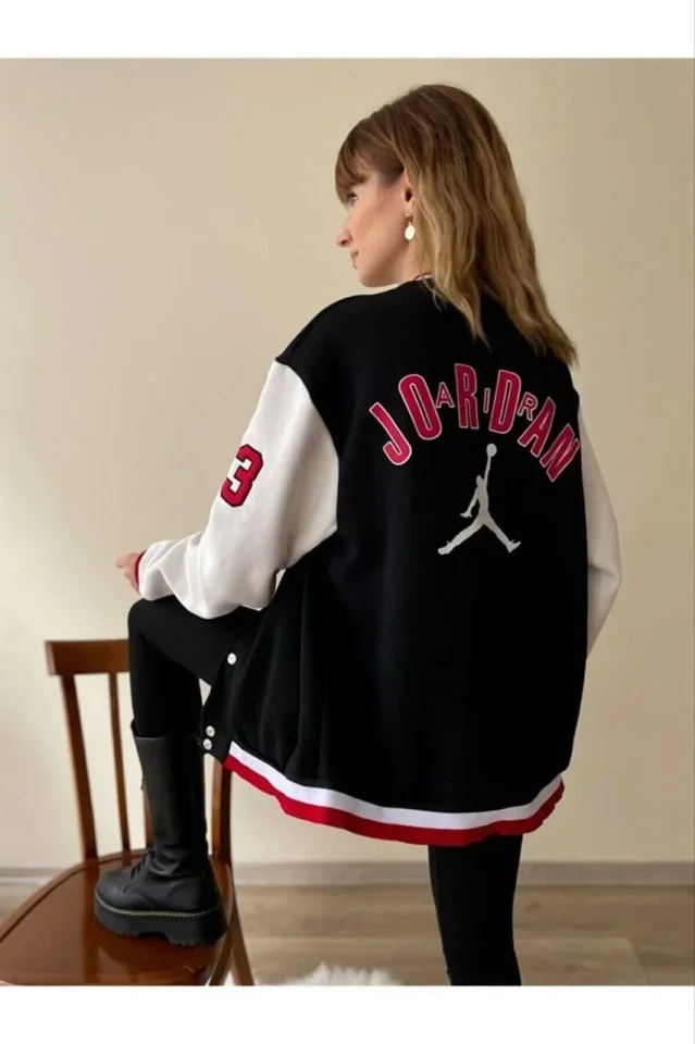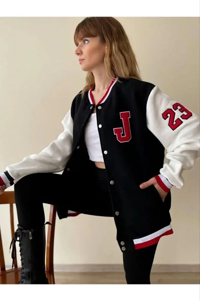 Ön Ve Kol Nakış İşlemeli Kolej Ceket - Siyah
