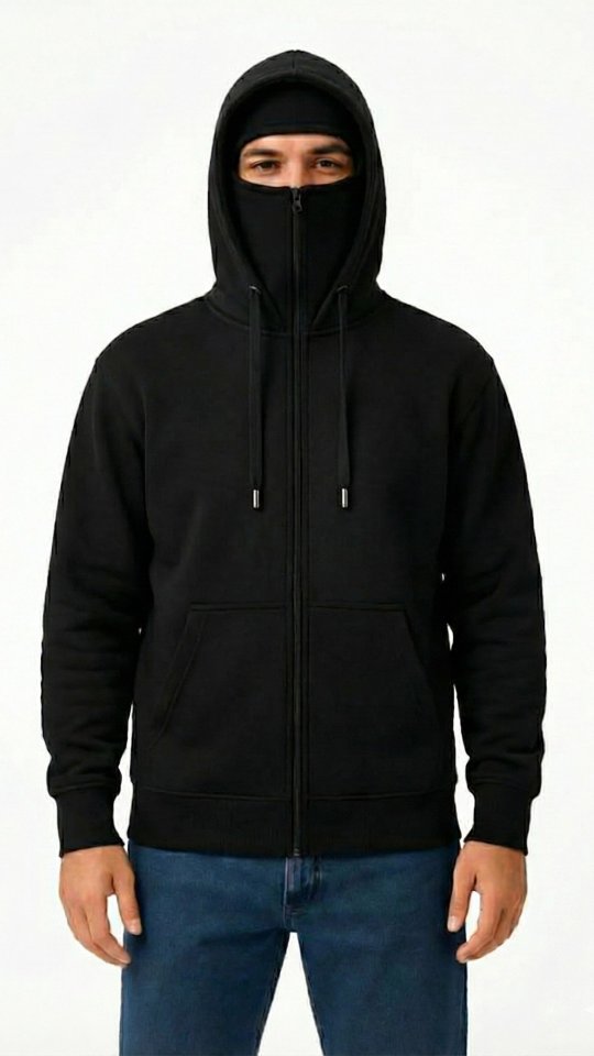 Samuray Ninja Çift Kapüşonlu ZIP Fermuarlı Kanguru Cepli Tam Fermuarlı Hoodie Sweatshirt - Siyah
