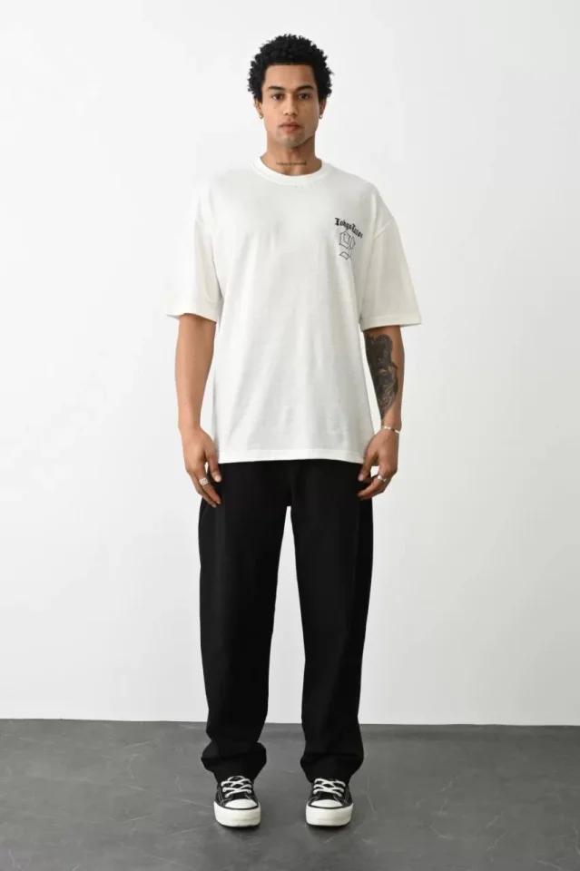 Unisex Baskılı Oversize T-Shirt - Beyaz