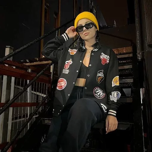 Unisex Baskılı Uzun Kol Kolej Ceket - Siyah