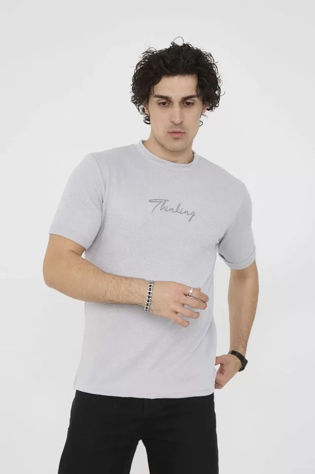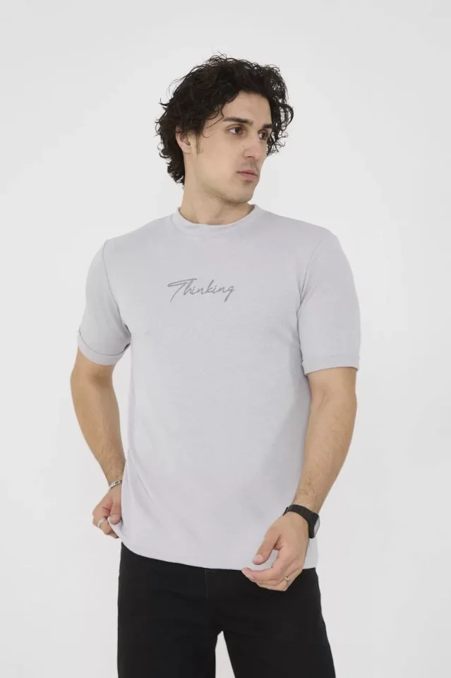 Unisex Bisiklet Yaka Slim Fit T-Shirt- Boyalı Gri