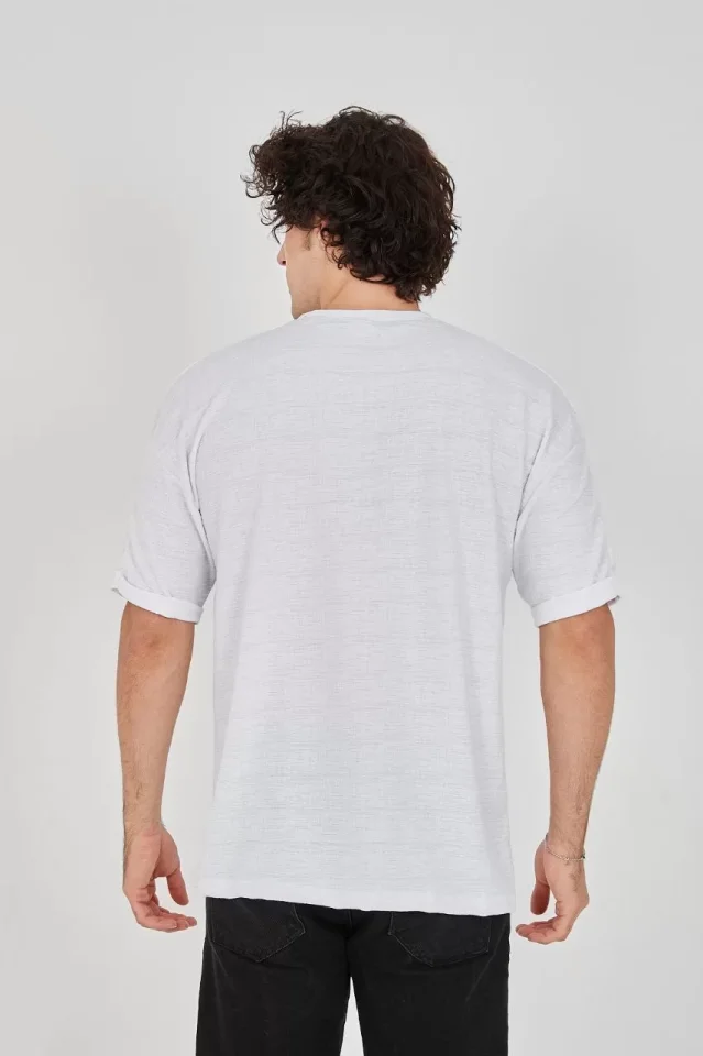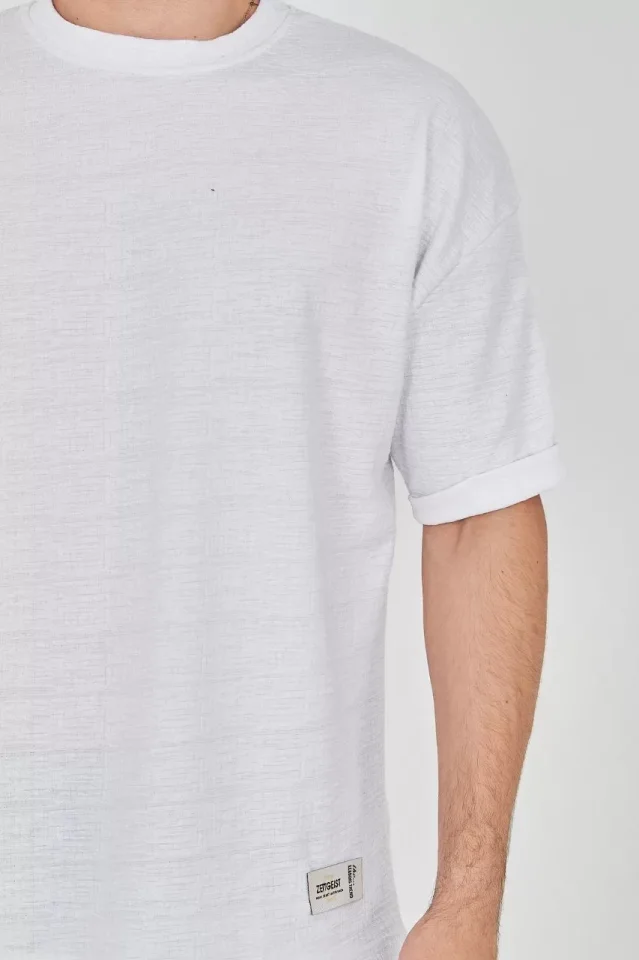 Unisex Jakar Kumaş Rahat Kol T-Shirt - Beyaz