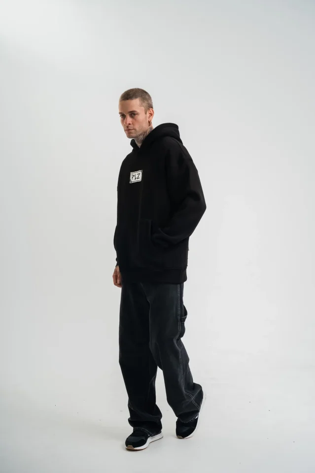 Unisex Kapşonlu Uzun Kol Patchli Nakışlı SweatShirt - Siyah
