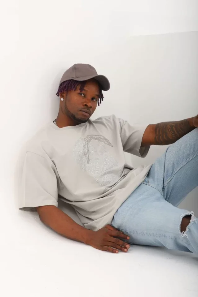 Unisex Oversize Taşlı Bisiklet Yaka T-Shirt - Gri