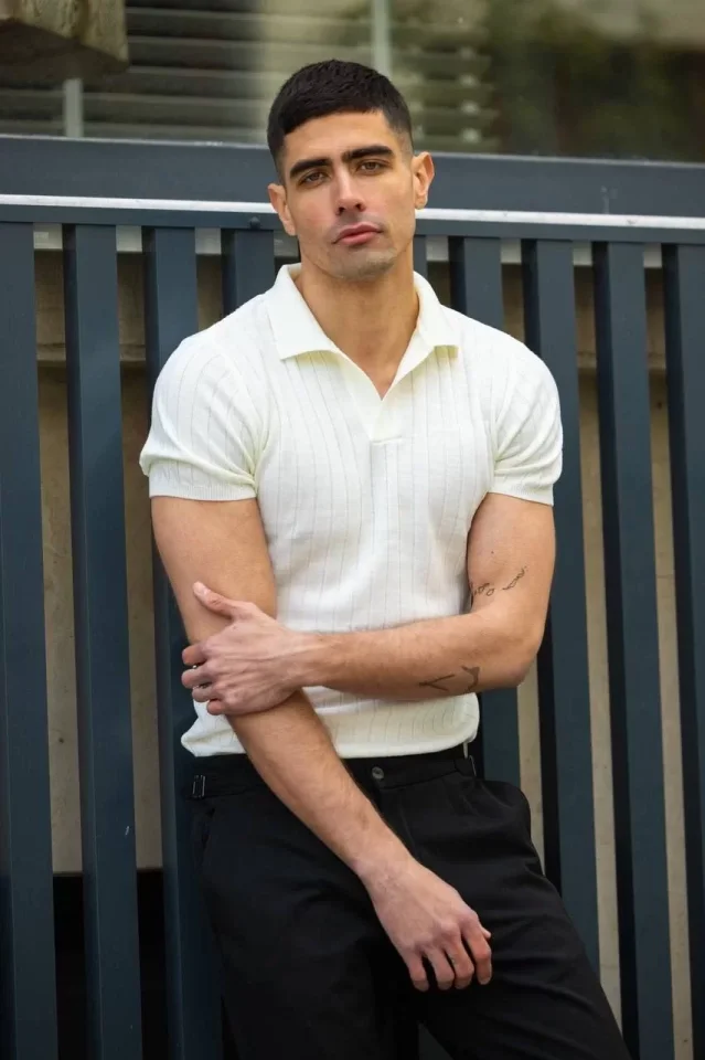 Unisex Yakalı Triko T-Shirt - Beyaz