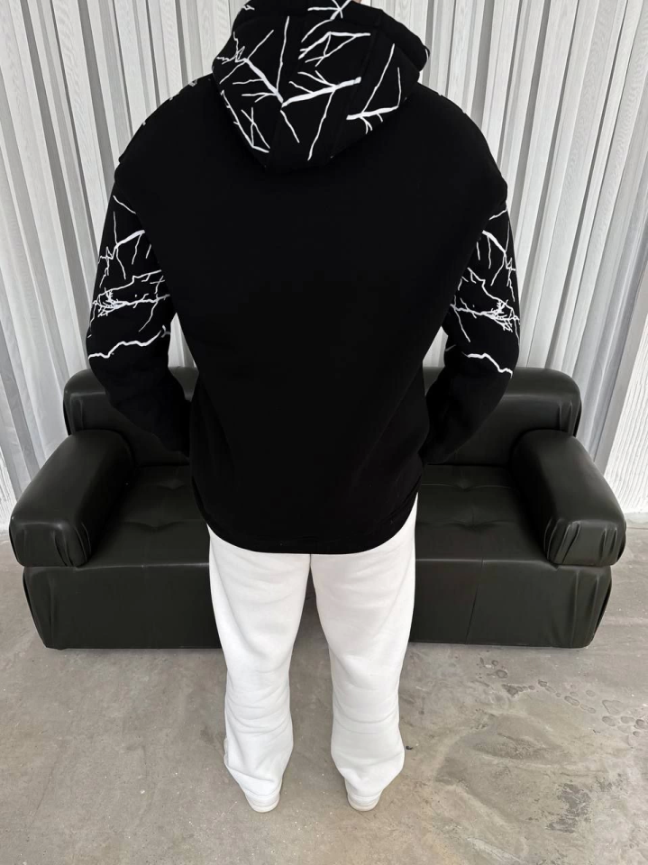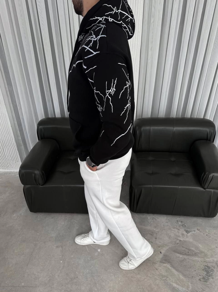 Yıldırım Baskılı Kapşonlu SweatShirt - Siyah