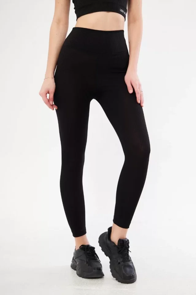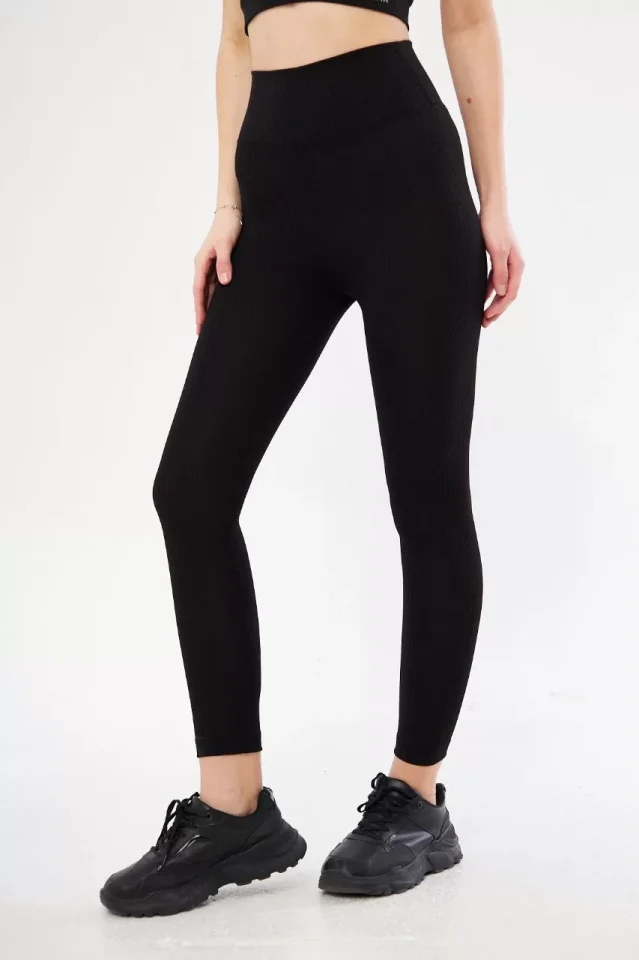 Yüksek Bel Fitilli Tayt - Siyah