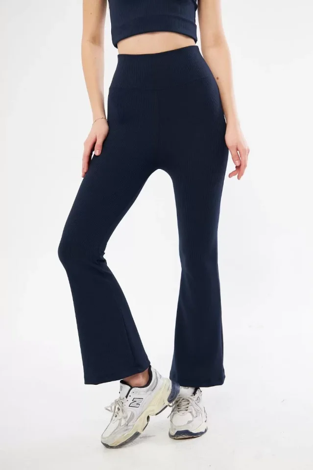 Yüksel Bel Fitilli İspanyol Paça Tayt - Lacivert