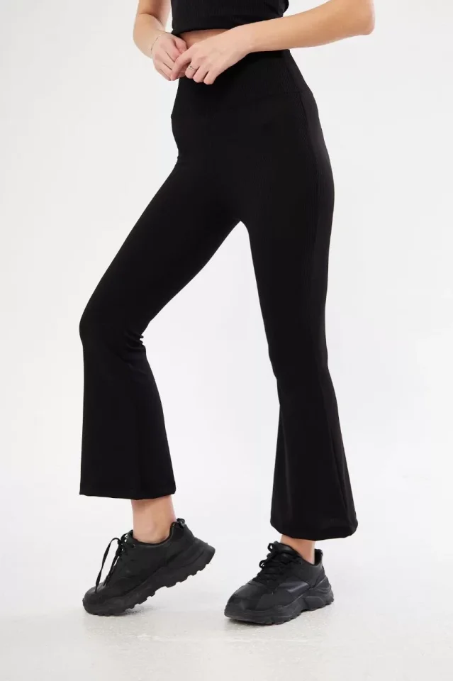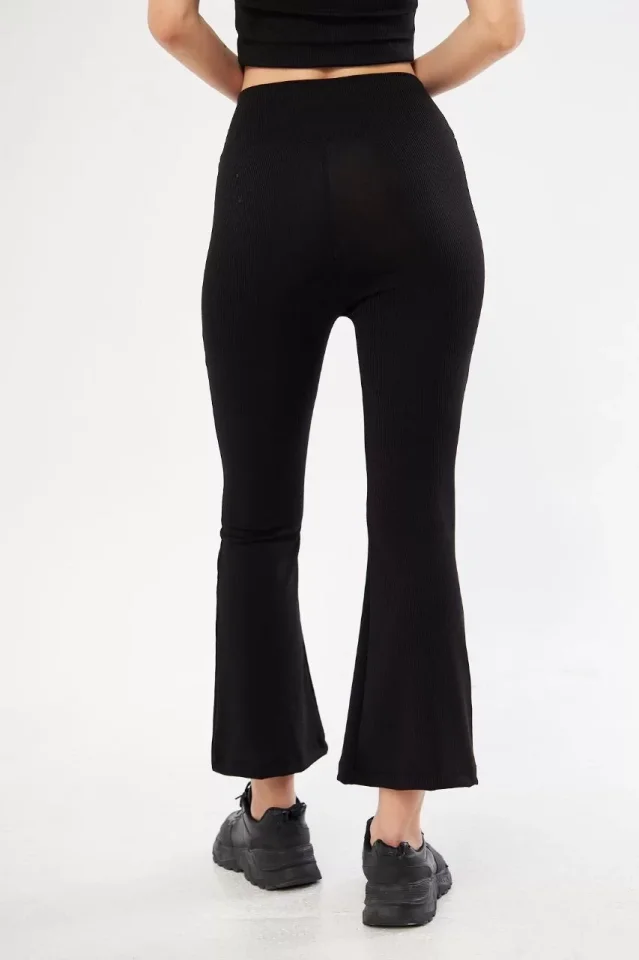 Yüksel Bel Fitilli İspanyol Paça Tayt - Siyah
